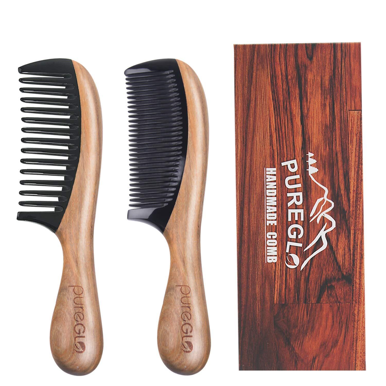 PureGlo Wooden Anti-Static Detangling Comb Set
